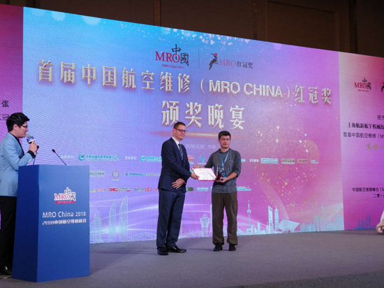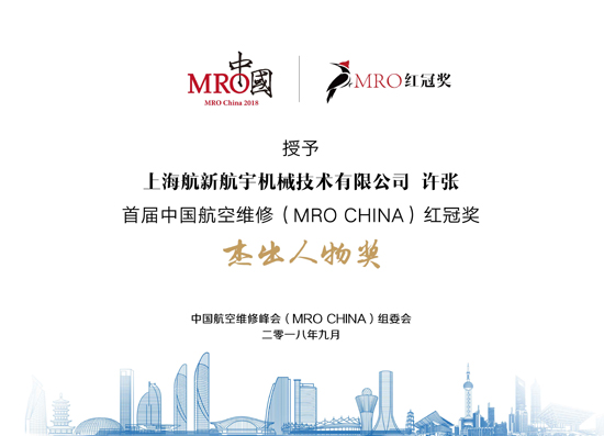在9月26日召开的2018年中国航空维修峰会(MRO CHINA 2018)上,上海333体育官网航宇机械手艺有限公司总司理许张荣获首届中国航空维修(MRO CHINA)红冠奖之“优异人物奖”。